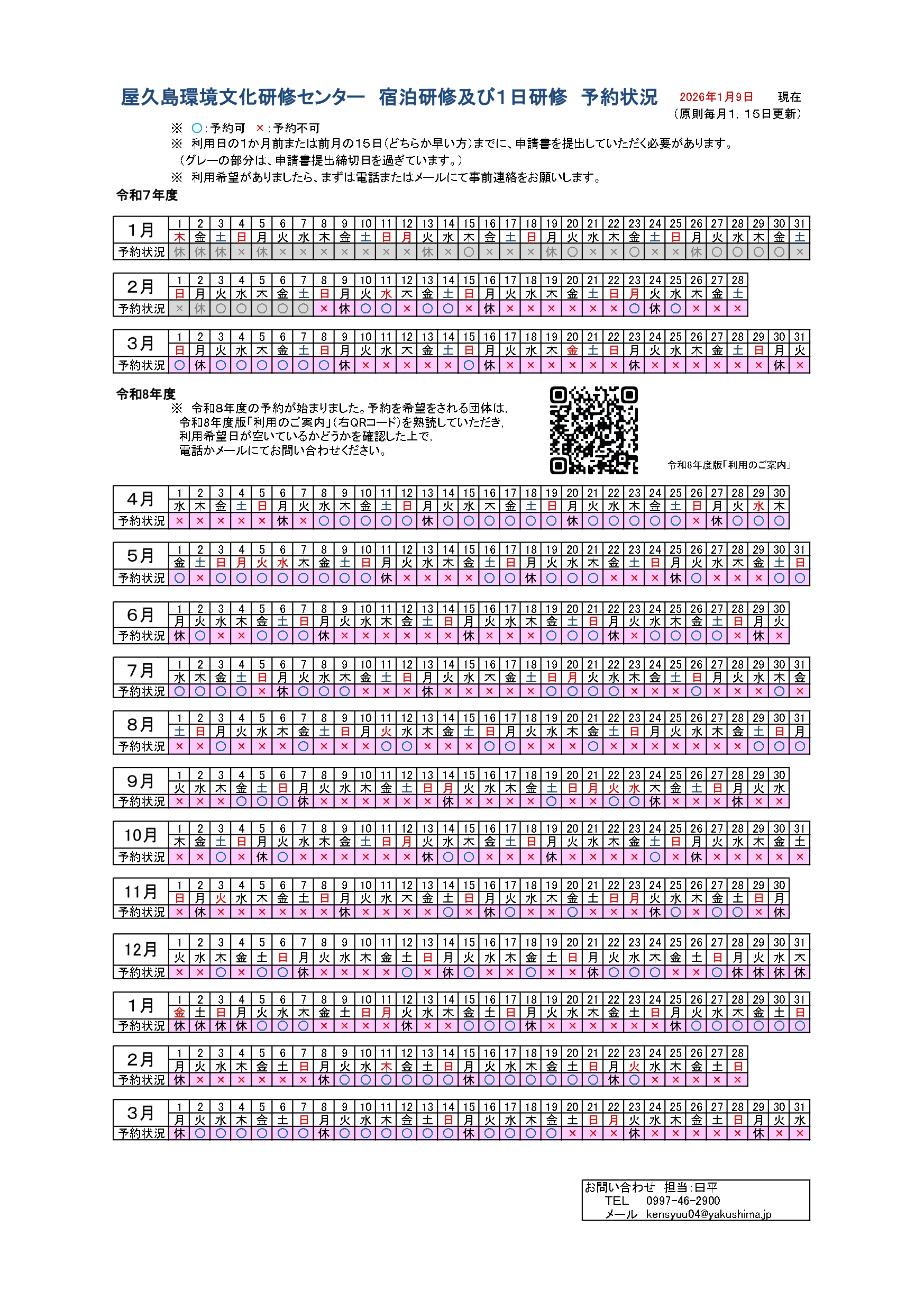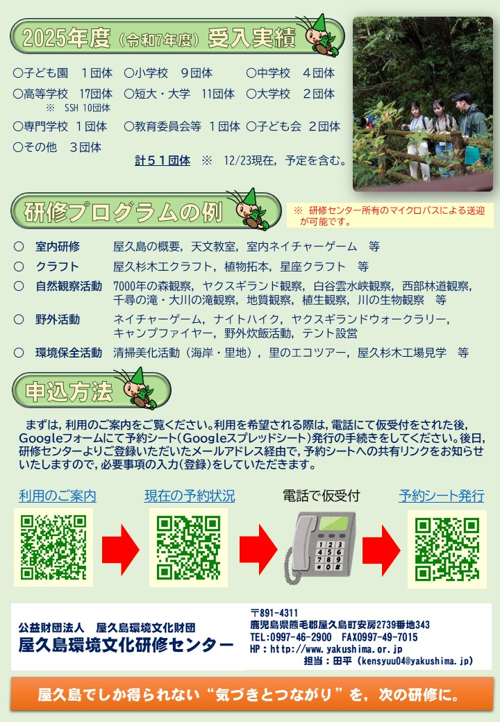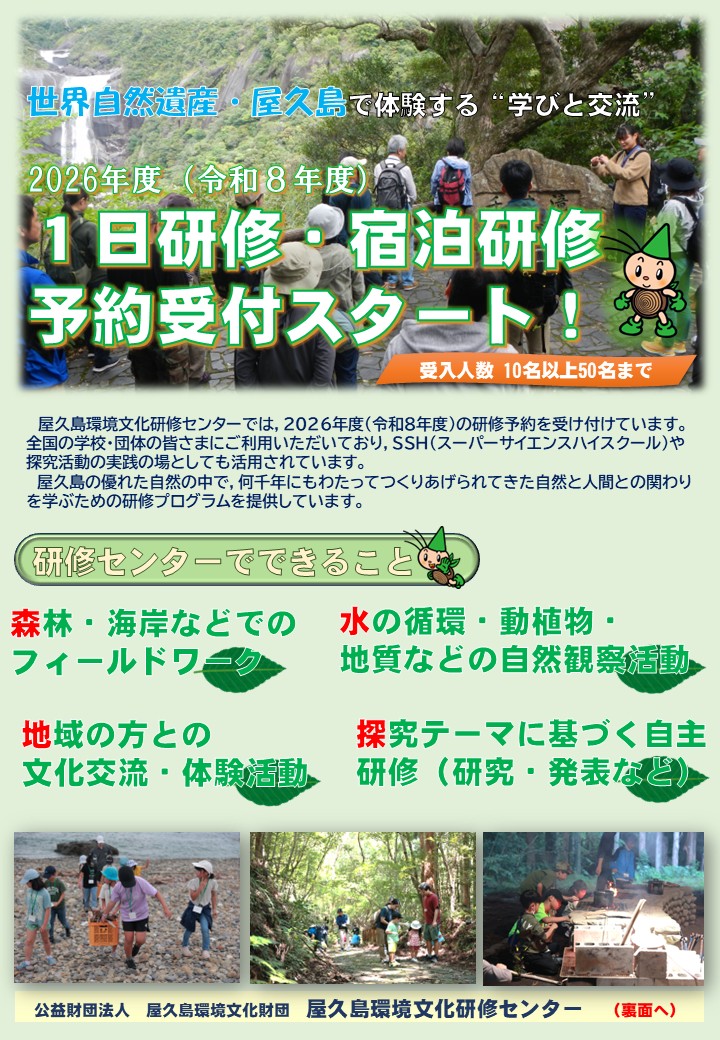 2026年度(令和8年度)分の,1日研修及び宿泊研修の予約受付を開始しました。