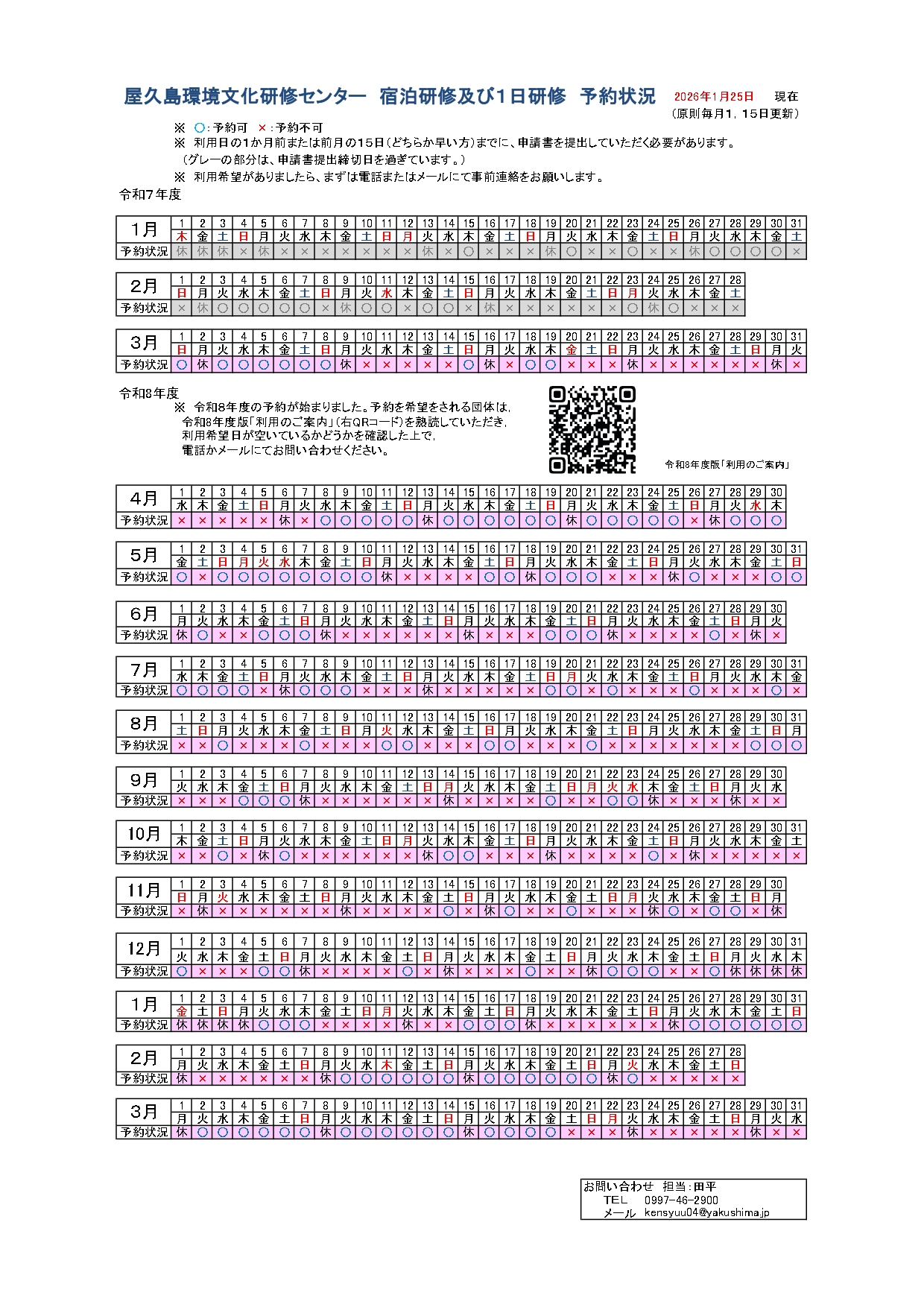 【1/25更新】受入事業予約状況(~令和9年3月)