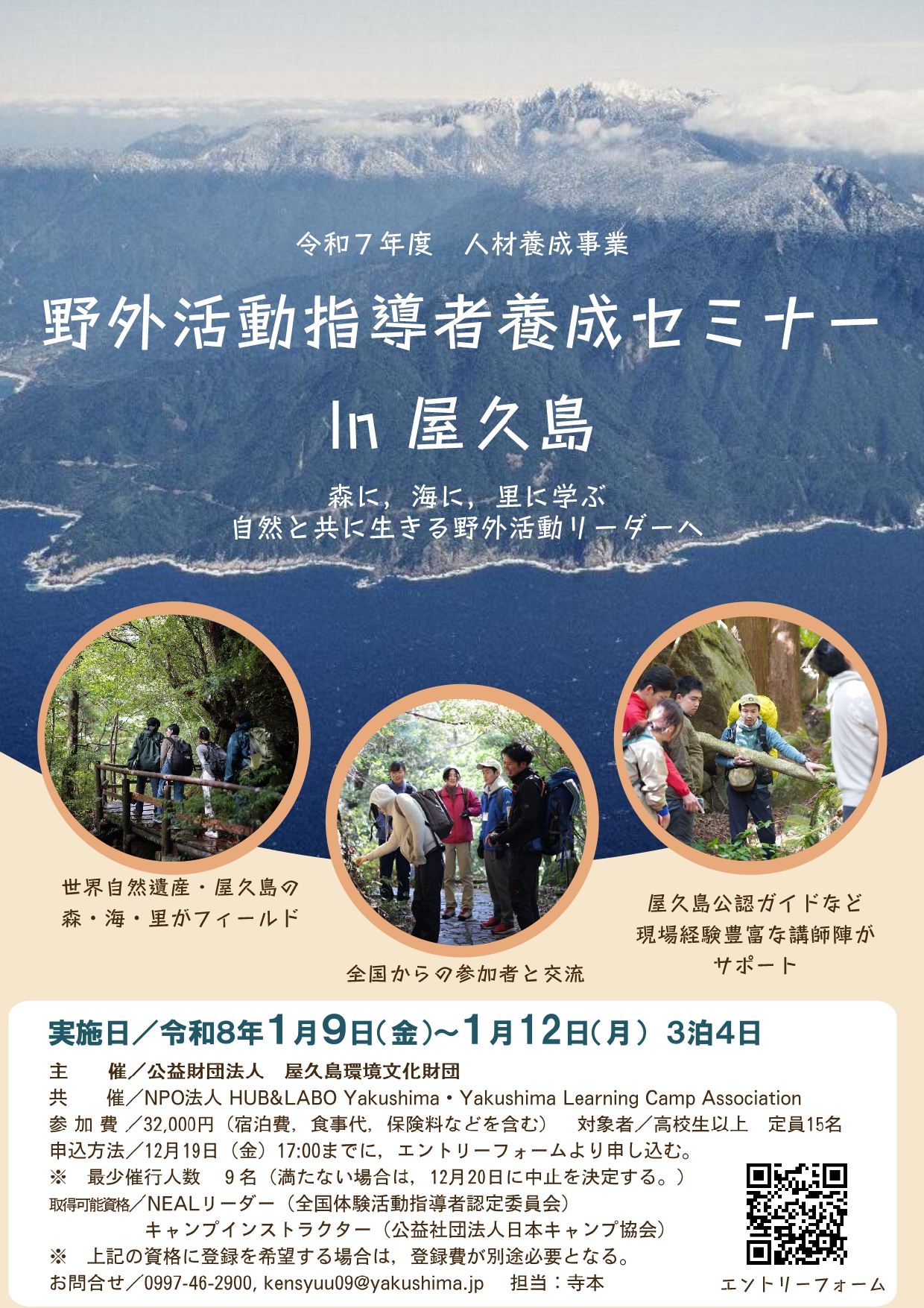 TEL:0997-46-2900 / E-mail:kensyuu09@yakushima.jp